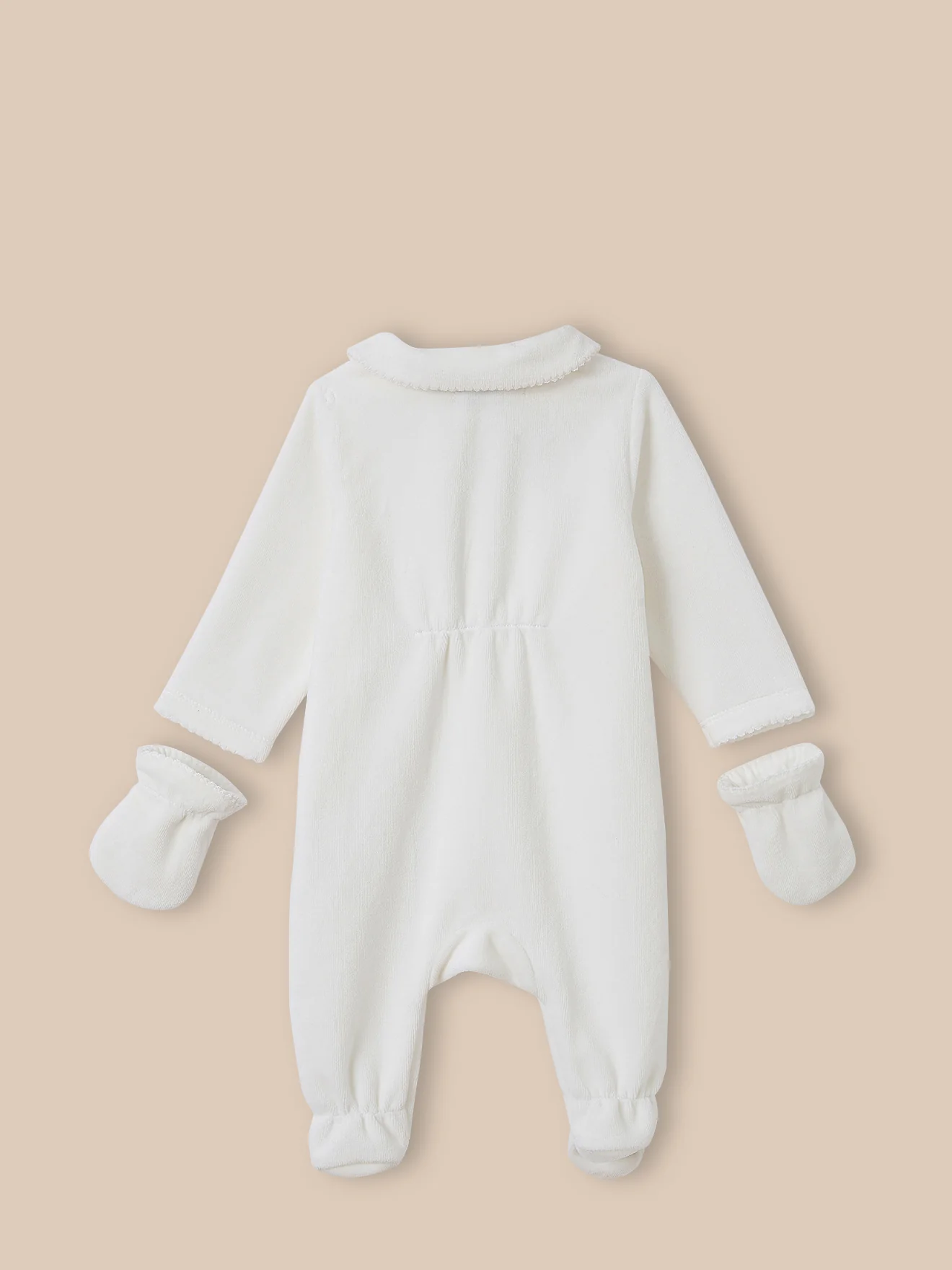 Le set spécial maternité : un dors-bien en velours tout doux, des moufles, et son bonnet assorti : le parfait cadeau de naissance ! Ouverture complète devant et à l’entrejambe par pressions pour un habillage facilité Broderie en point de croix. Finition par picot
