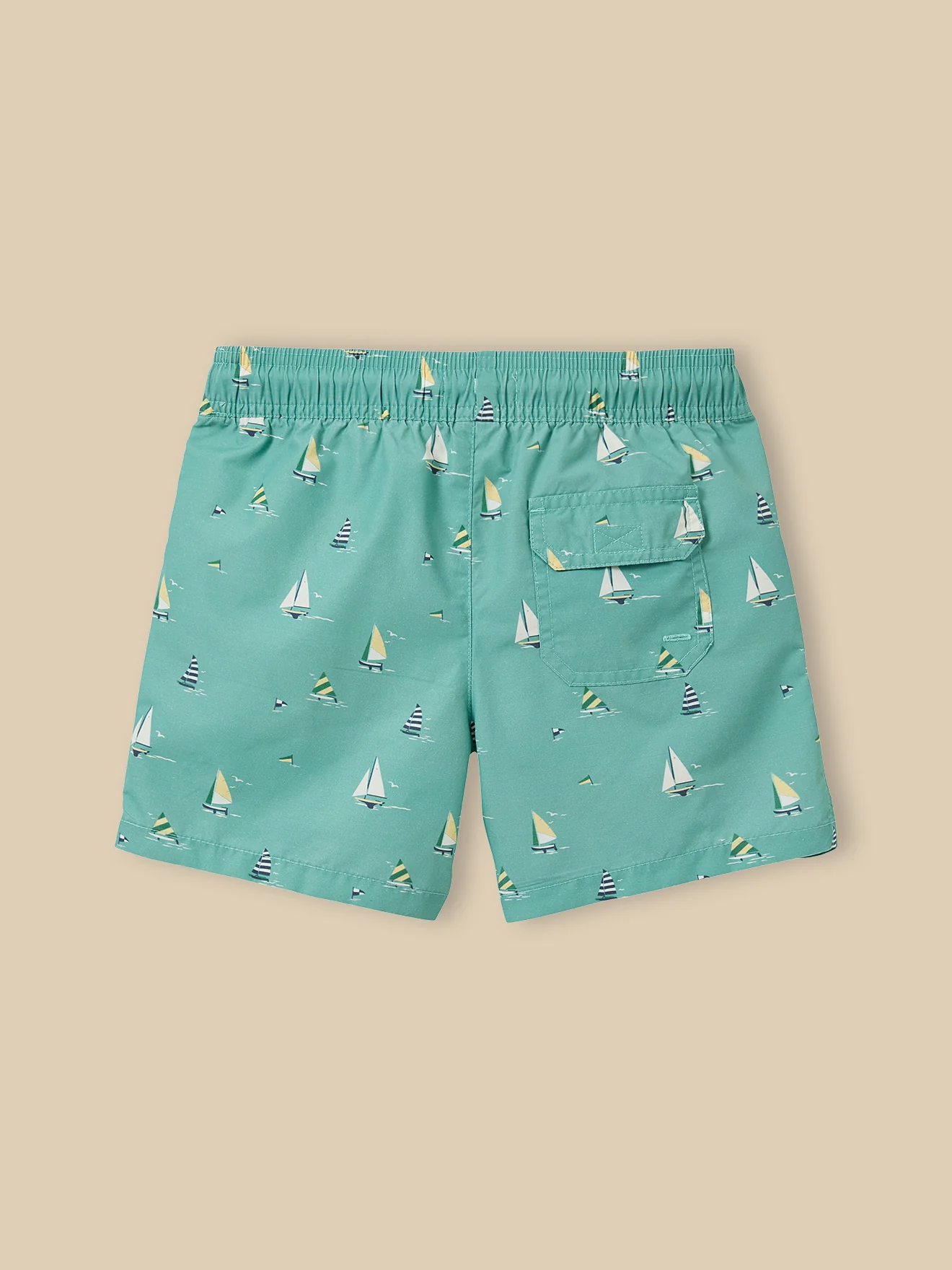 Un style nautique-chic pour des vacances au bord de l’eau ! Taille ajustable élastiquée avec cordon de serrage Poche passepoilée de chaque côté, 1 poche avec rabat à l’arrière Slip filet à l’intérieur. Longueur mi-cuisses