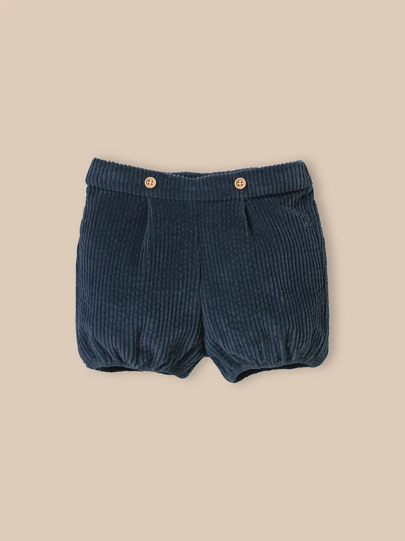 Ce short bébé en velours milleraies adopte une coupe boule au style rétro-chic, parfaite pour un look élégant et confortable. Taille élastiquée ajustable à l’intérieur Boutons en bois Cuisses élastiquées