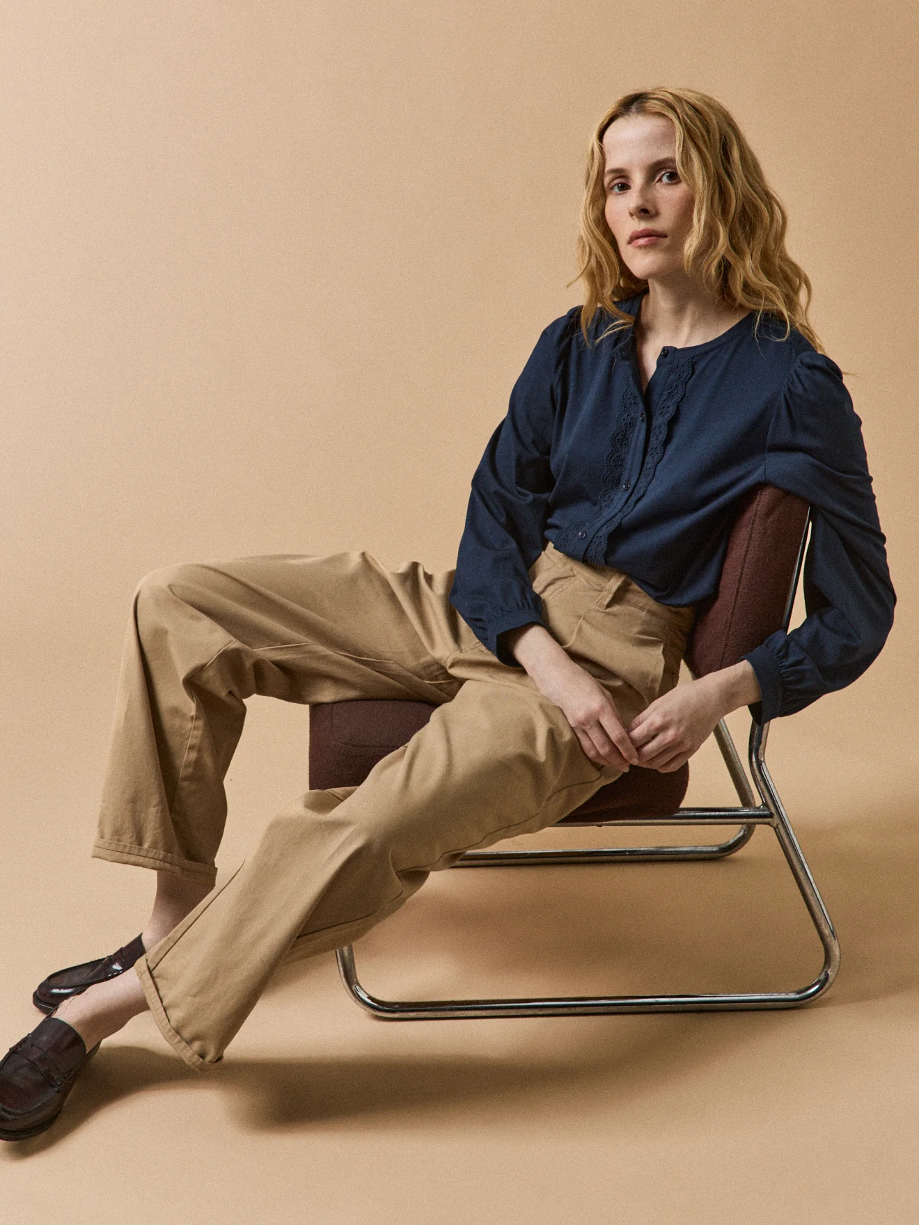 - Manches longues montées sur fronces et resserrées dans bracelet