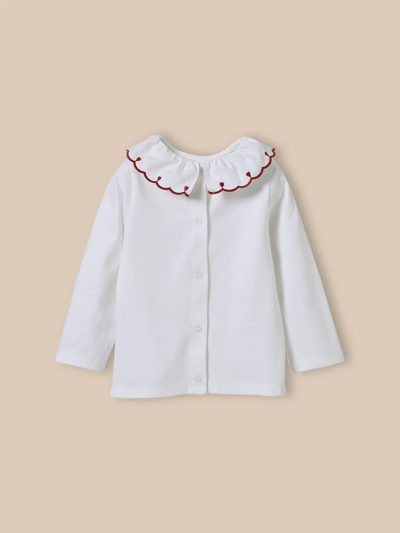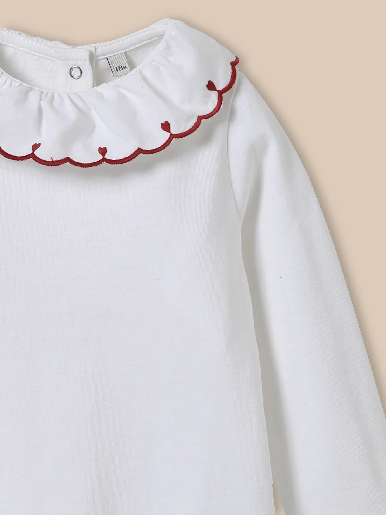 Un col festonné, des broderies coeur… et le tee-shirt devient une petite pièce chic ! Col brodé et festonné Ouverture dos par pressions