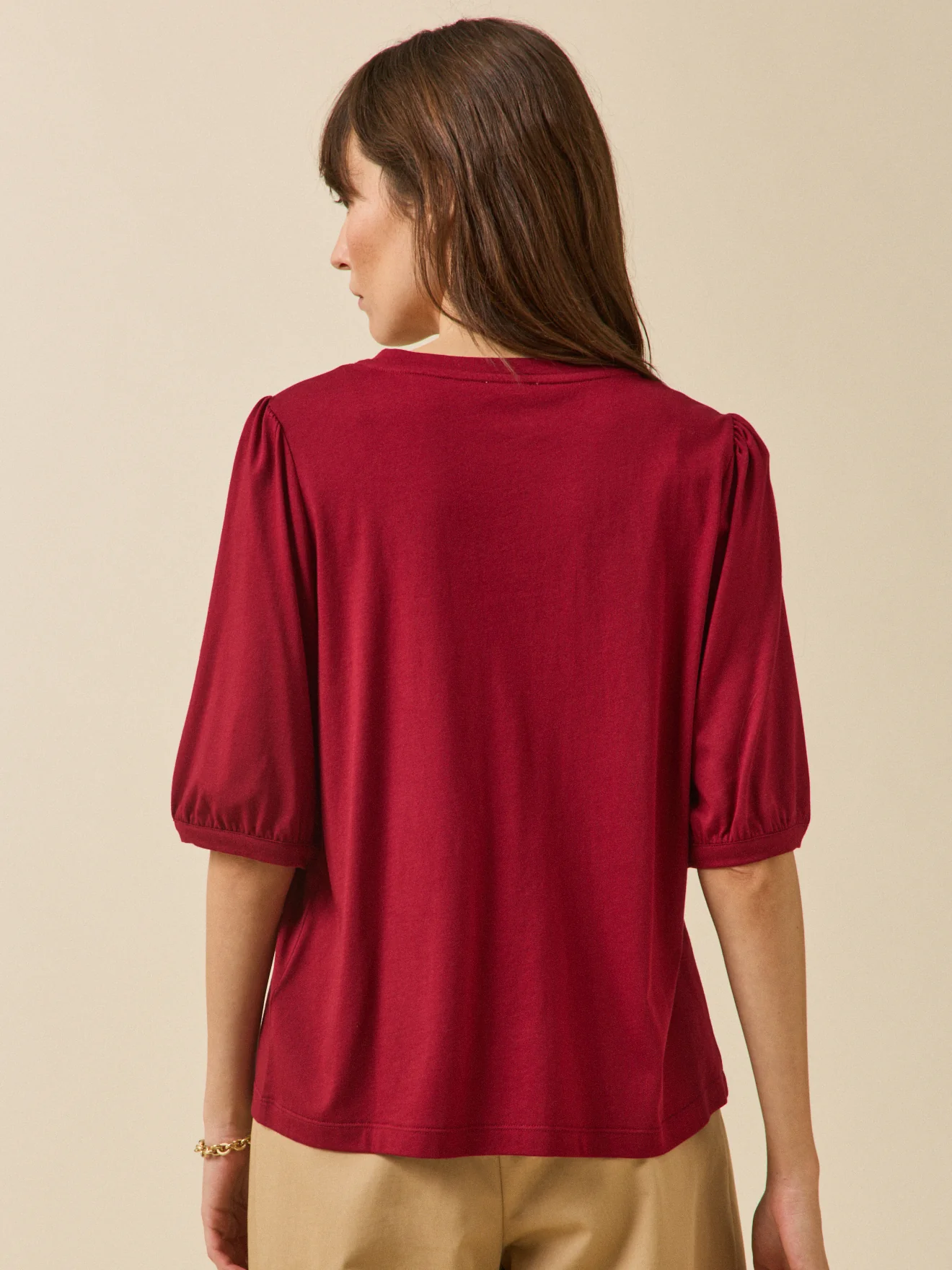 - Manches longues montées sur fronces et resserrées dans bracelet