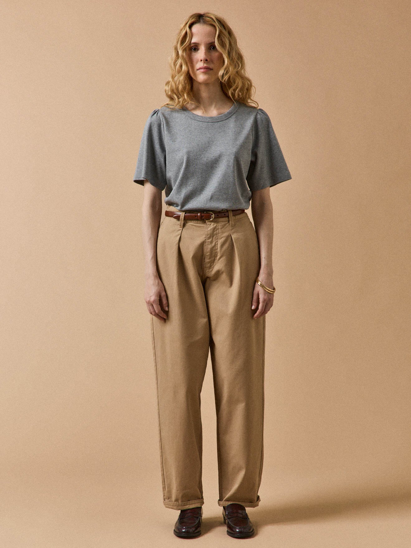 Cool sous une chemise, impeccable sous une veste, facile en solo, le T-shirt manches courtes est l’indispensable basique du quotidien. En jersey lourd et coton biologique certifié, celui-ci traverse les modes et les saisons.