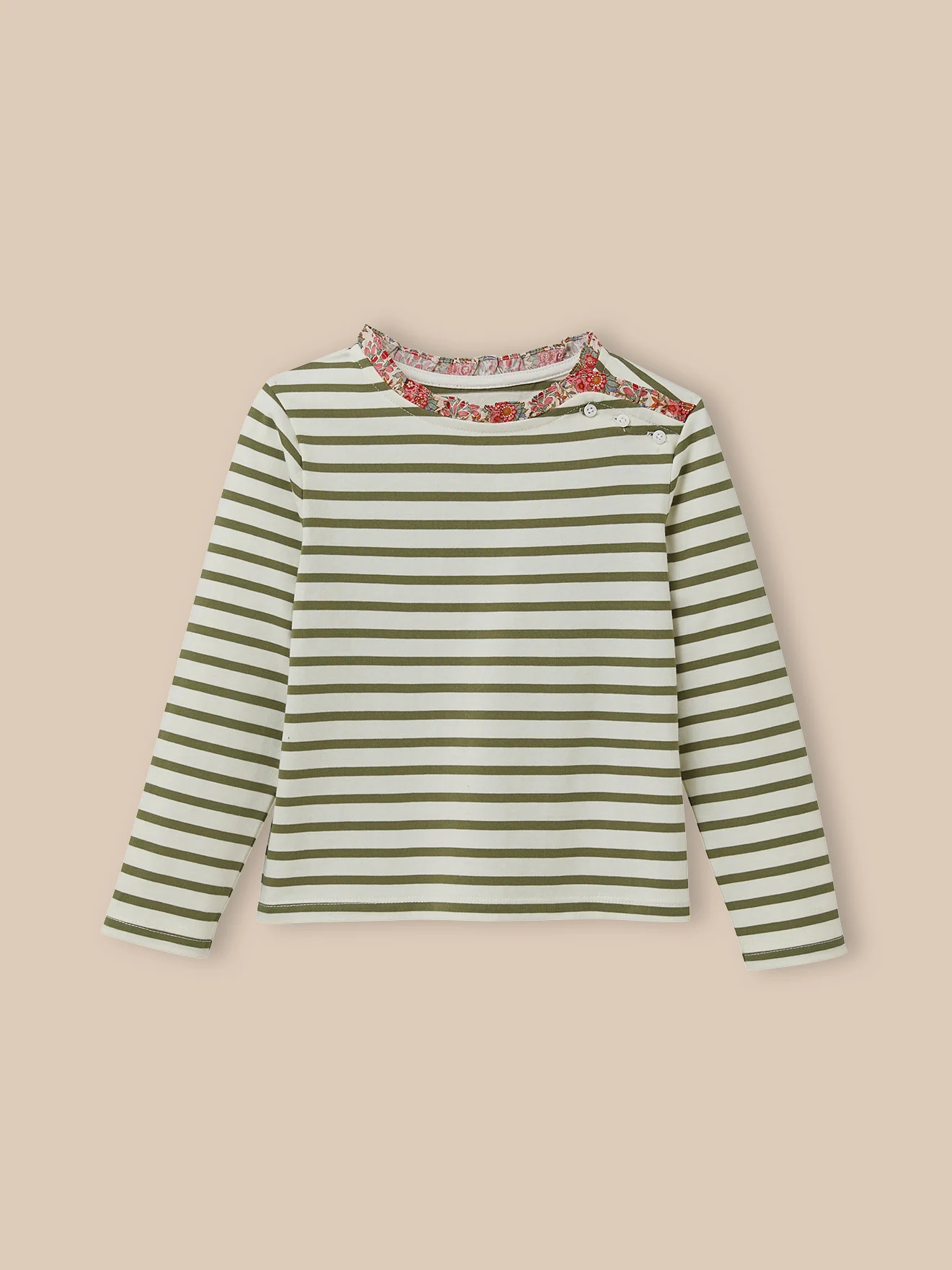 Cette touche de Liberty apporte une note romantique à notre iconique marinière . Tissu Liberty à l’encolure et sur la patte de boutonnage sur l’épaule