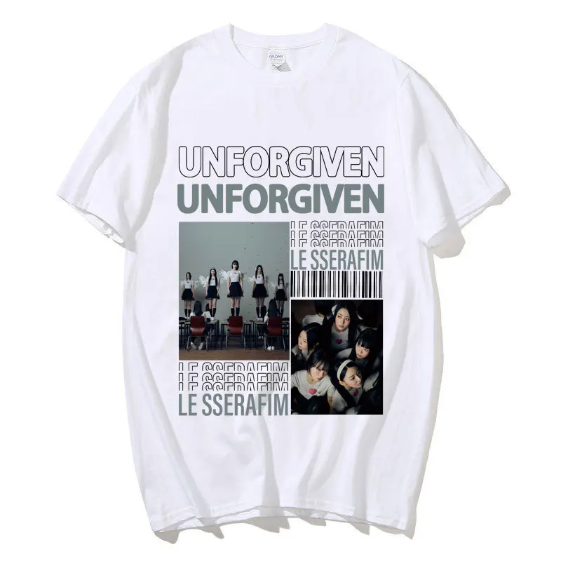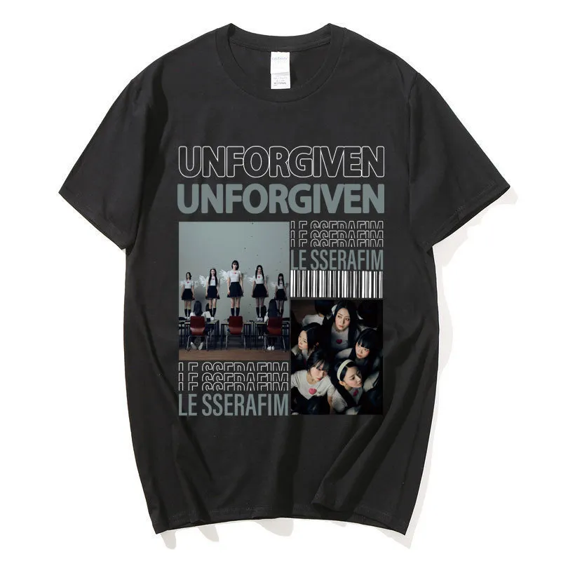 Le T-Shirt « UNFORGIVEN » LE SSERAFIM est une pièce essentielle pour tout fan de K-pop et adepte de la mode Y2K. Célébrant les icônes SAKURA, CHAEWON, YUNJIN, KAZUHA et EUNCHAE, ce t-shirt en coton est un hommage vibrant à l’énergie et au style du groupe LE SSERAFIM. Avec une coupe décontractée et un design imprimé tendance, il incarne le confort et le style de la jeunesse contemporaine. Parfait pour les saisons chaudes, ce t-shirt est un incontournable pour les amateurs de mode coréenne et les fans de LE SSERAFIM.