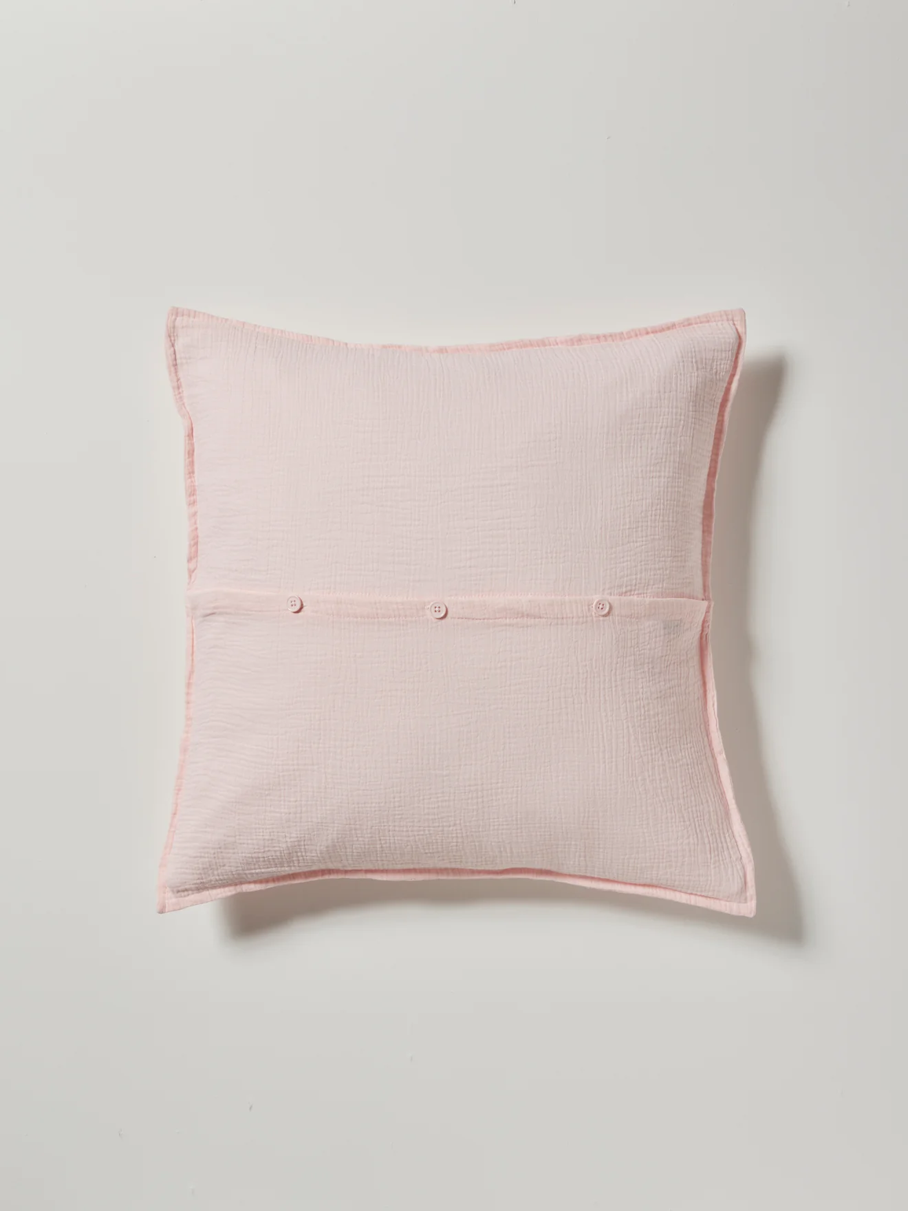 Taie d’oreiller en gaze de coton à l’aspect gaufré. Style raffiné, confort doux et aérien, coloris subtils et actuels. Fermeture boutonnée au dos