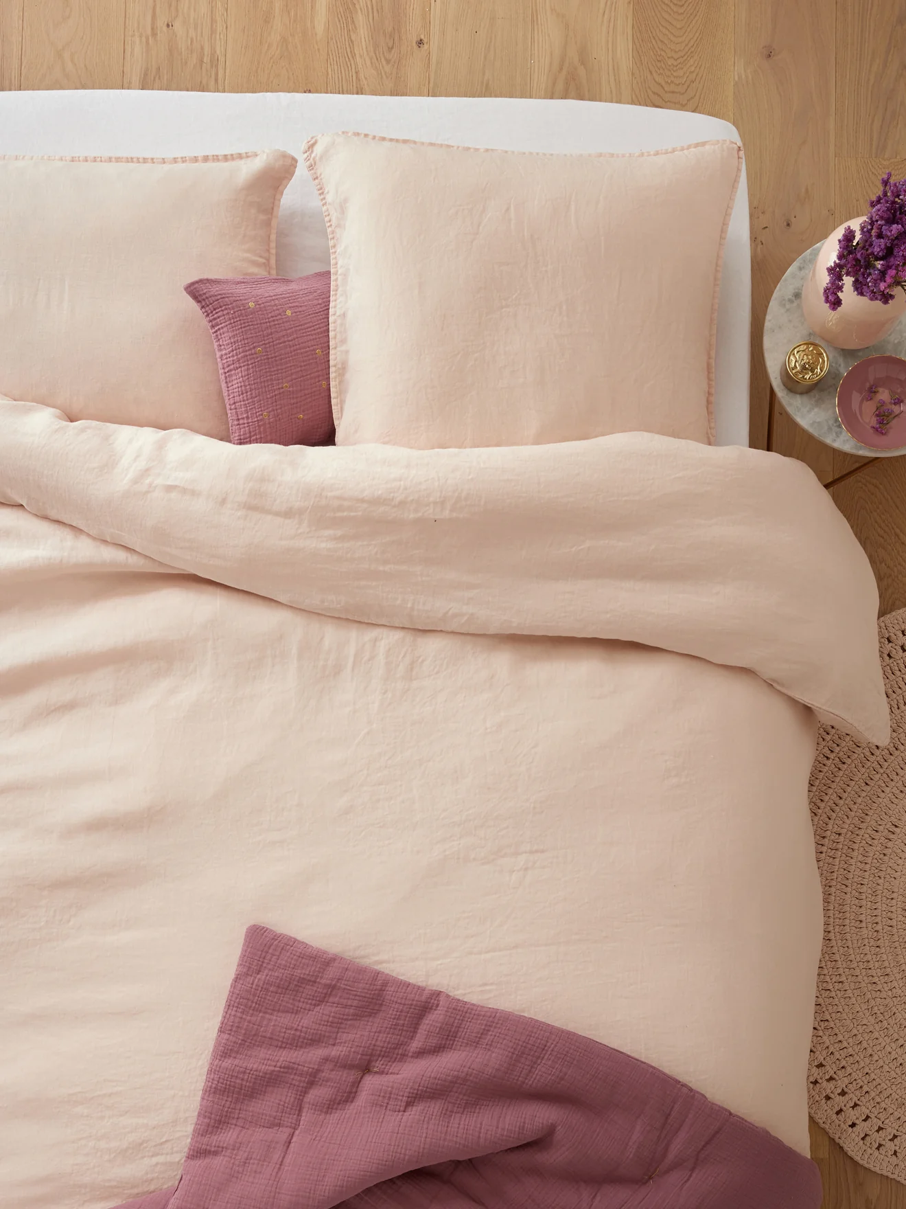 La taie d’oreiller en lin lavé procure une douceur naturelle et un rendu exceptionnel. Confectionnée au Portugal pour leur remarquable savoir-faire en matière de tissage.