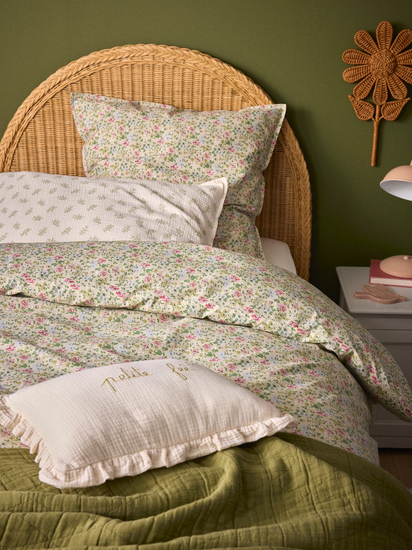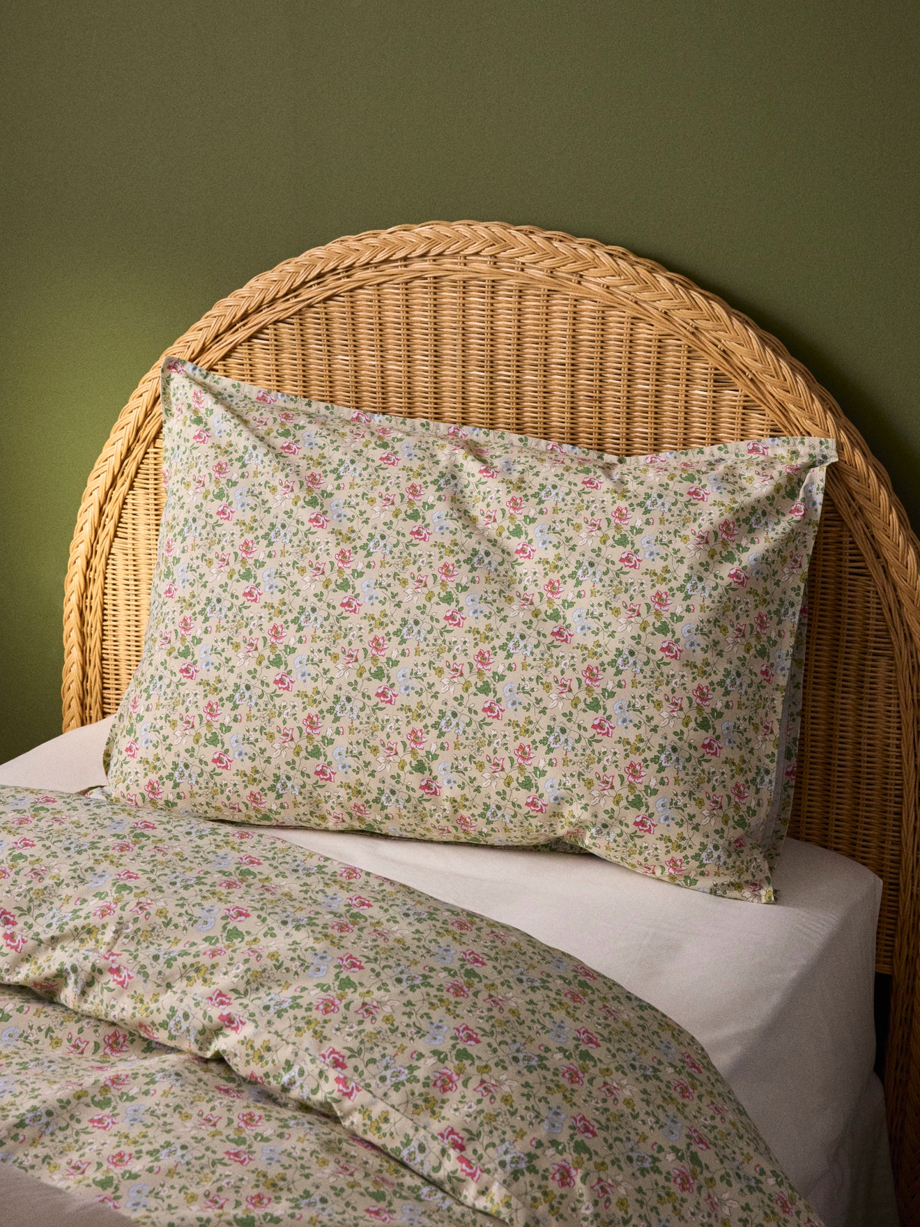 Taie d’oreiller en percale de coton douce et résistante imprimée recto/verso avec rabat intérieur et petit volant plat. Le délicat motif fleuri, réalisé en exclusivité par notre équipe de style, est imprimé sur les 2 faces.