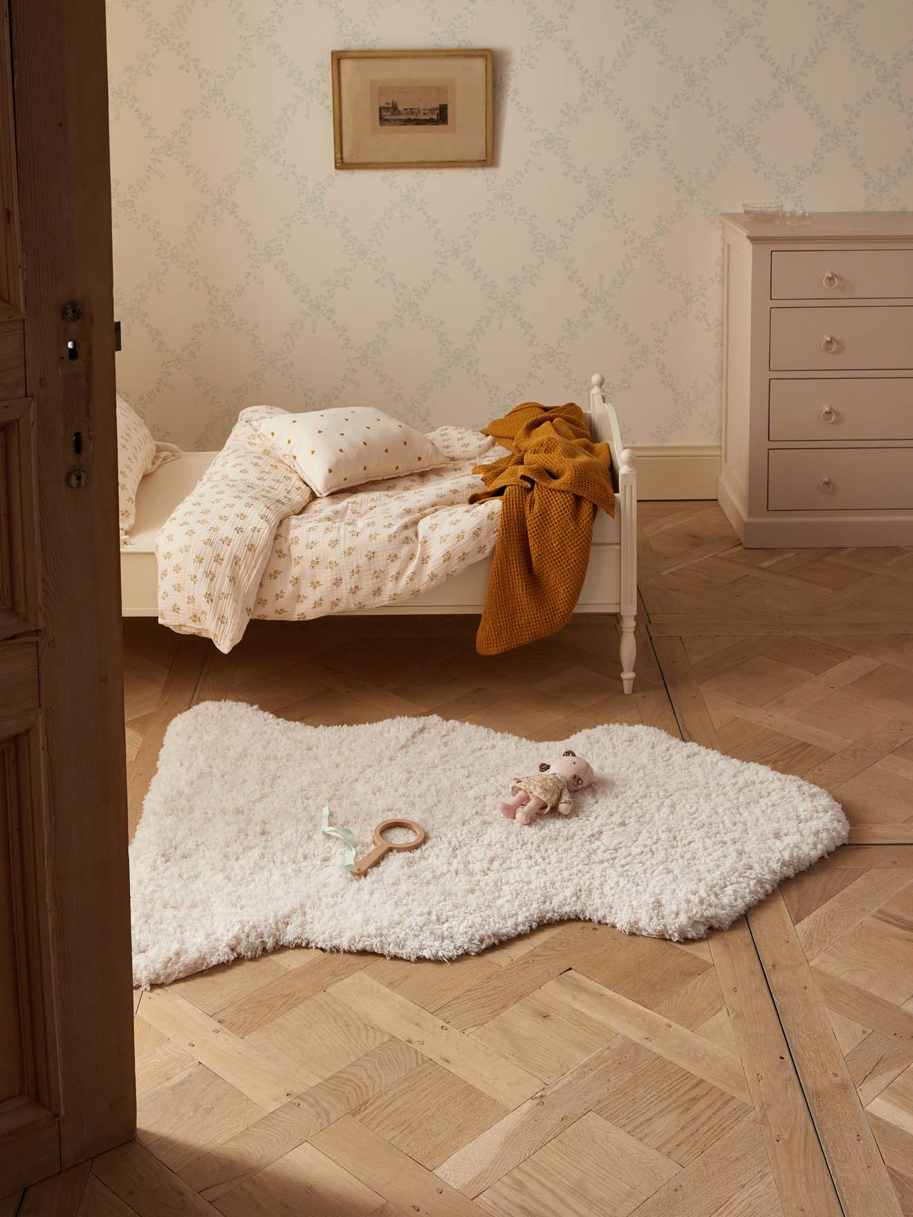 Tapis tufté doux et moelleux fabriqué en Inde. Grâce à sa petite taille et à sa matière facile à vivre, il peut être lavé en machine. Sa forme peau de bête et sa couleur blanc cassé font de ce tapis douillet un tapis élégant et tendance, parfait en descente de lit ou en tapis de jeux dans la chambre des enfants.