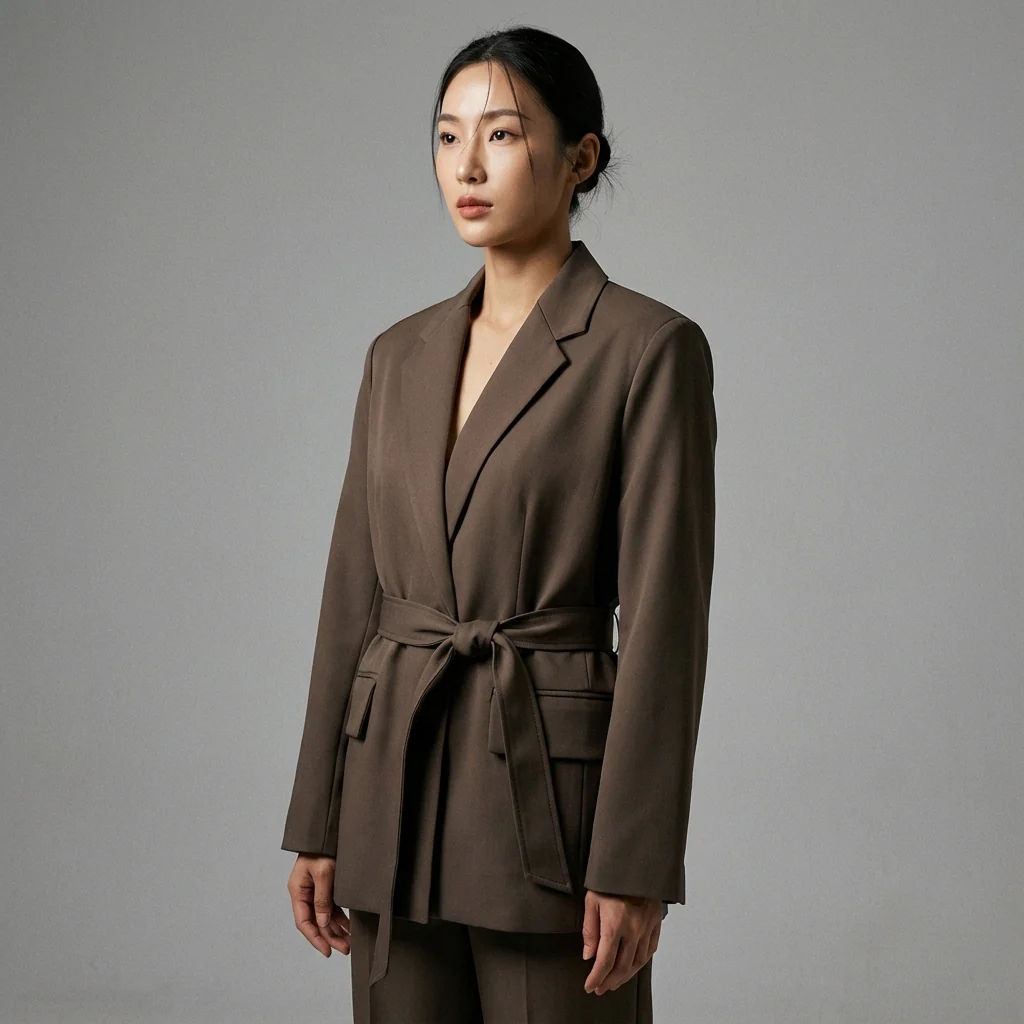 Découvrez notre élégante Veste Blazer Coréenne marron foncé pour femme, parfaite pour une silhouette sophistiquée et moderne. Son design structuré avec col à revers et ceinture apporte une touche d’élégance intemporelle, idéale pour toutes les occasions ! ✨