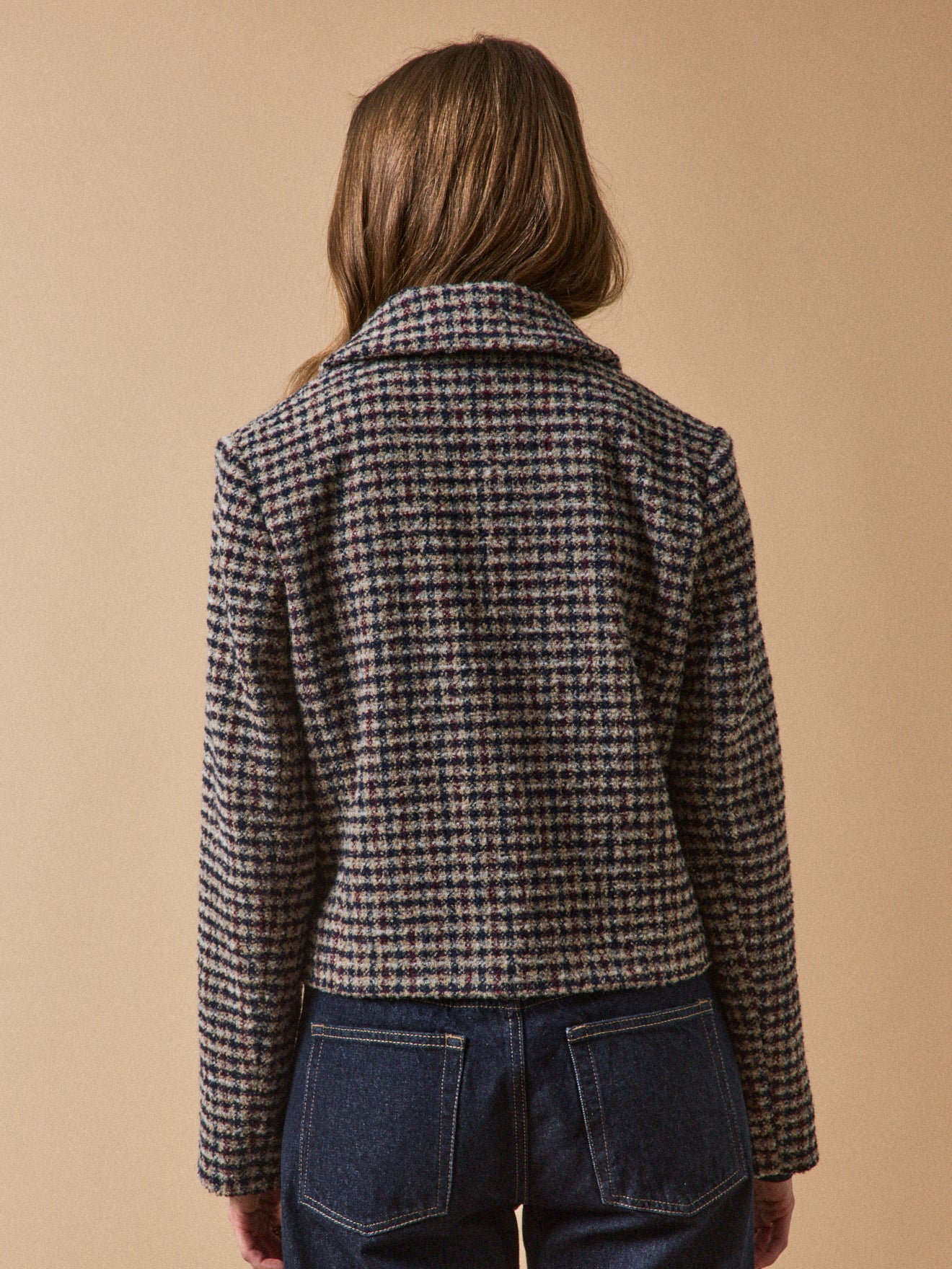 Veste boutonnée tweed carreaux femme