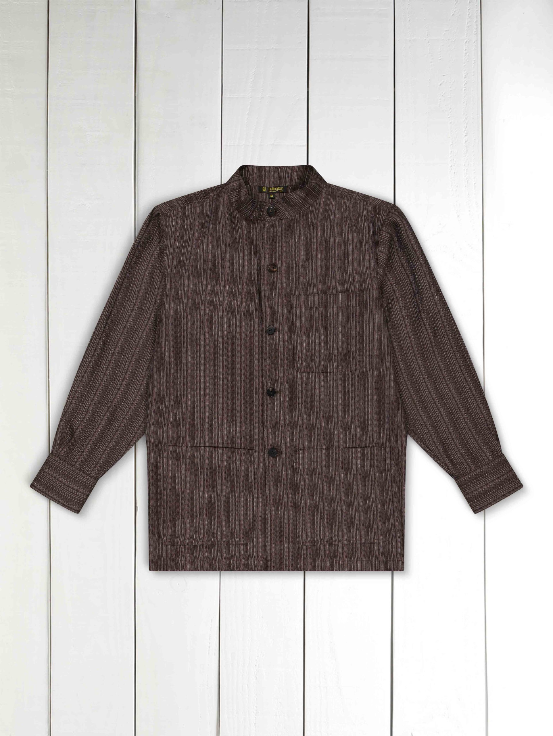 veste-chemise col mao en serge de lin écorse