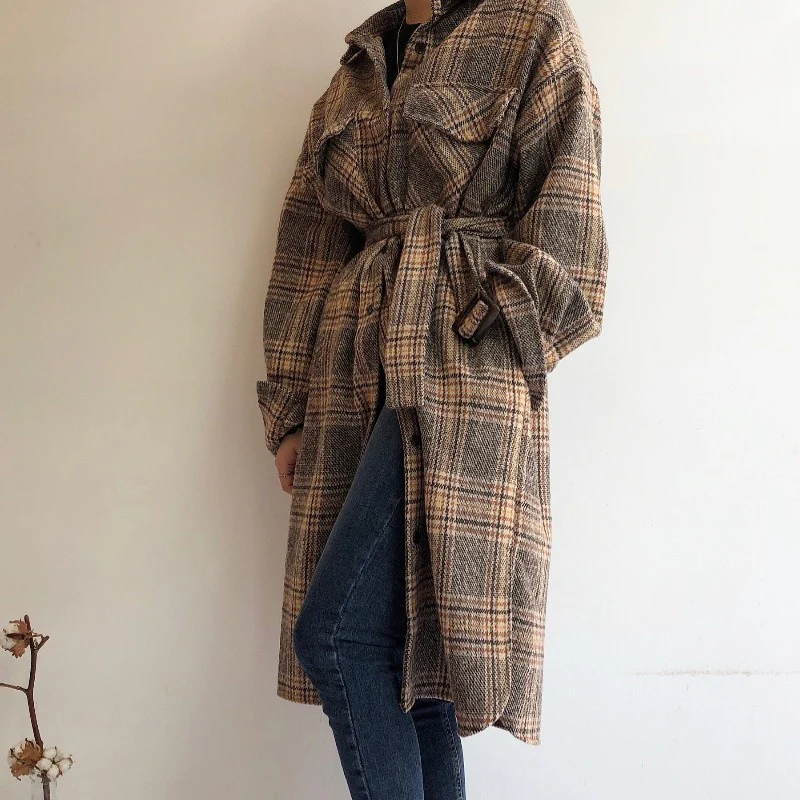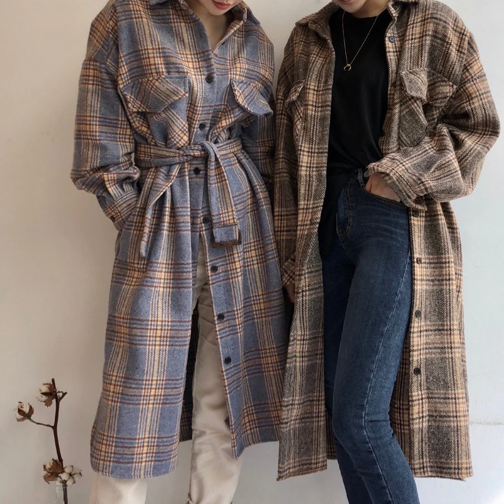 Voici notre Veste longue à carreaux issue des tendances coréennes. Elle possède un motif Vintage et un tissu qui tient chaud. La veste parfaite pour les jours frais. Type : Veste Coréenne à carreauxMatière : Coton et PolyesterDisponible en 2 couleurs.Style : Corée du sud, Carreaux, Vintage