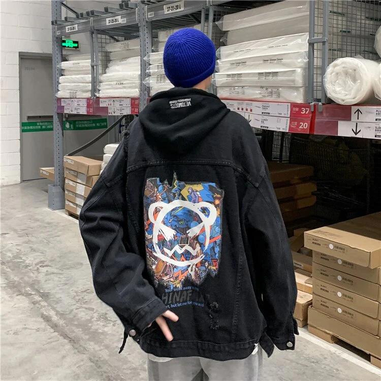 Cette veste en jeans possède une capuche de sweat. C’est un beau modèle qui est parfait en automne, au printemps et en hiver. Devenez le porteur d’une veste coréenne très à la mode. Un smiley ours coloré est imprimé dans le dos, ce qui plait beaucoup aux jeunes fans de K-Pop.