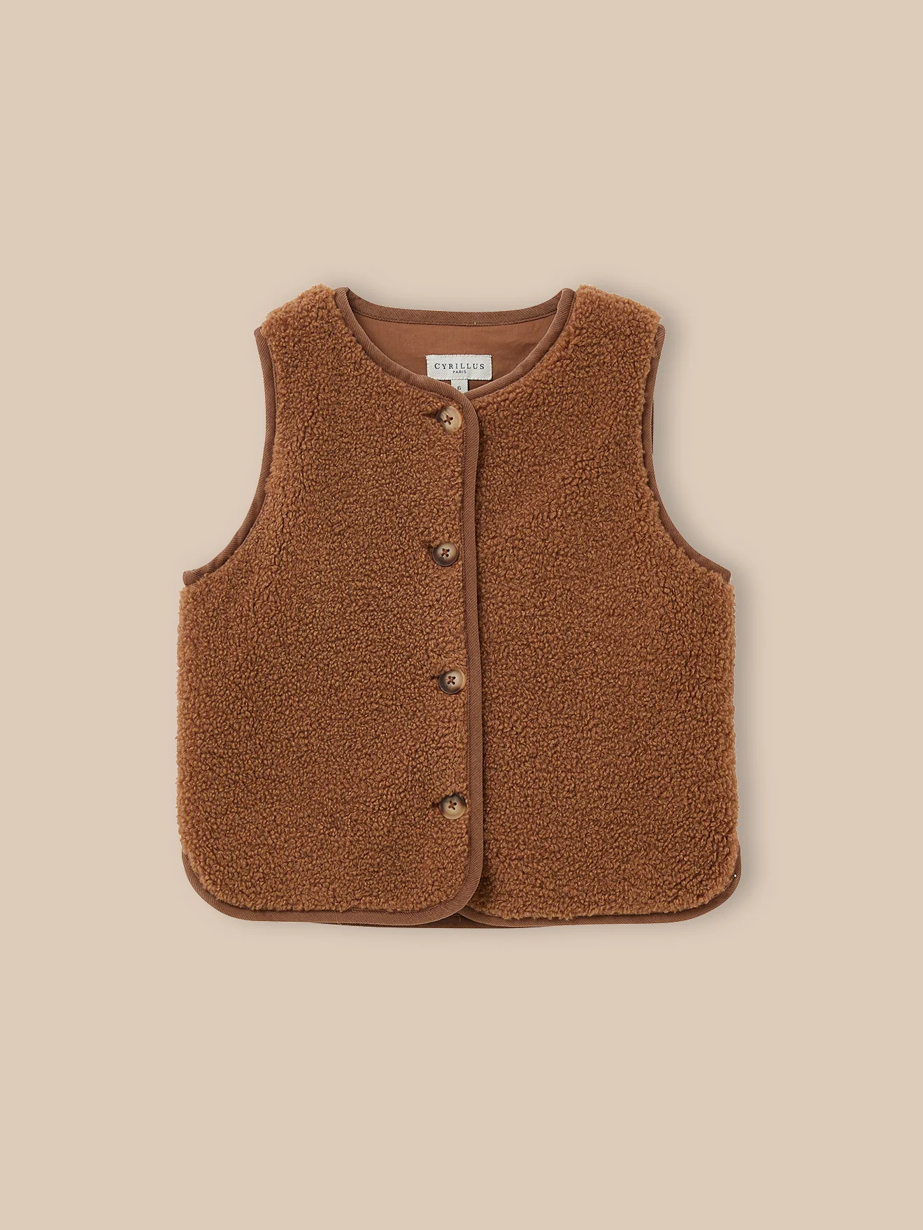 Style, douceur et finitions soignées. La veste moutonnée sans manches à fière allure de l’automne au printemps : en veste d’extérieur en entrée de saison, en cardigan au coeur de l’hiver. Biais en velours contrasté Fermeture par boutons. Petites fentes côtés