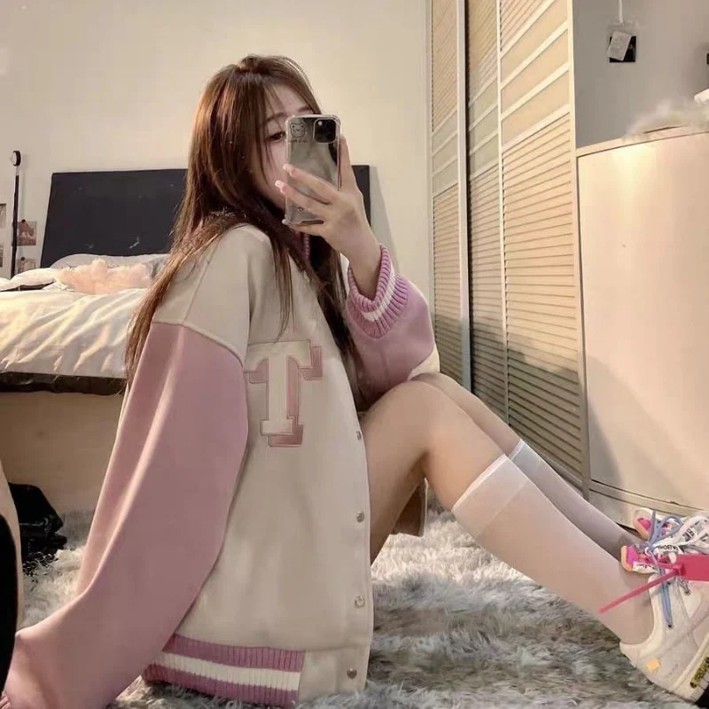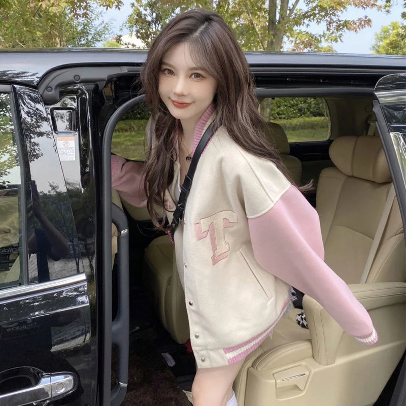Couleur: Rose Type: Veste de baseball Style: Casual, Etudiant, Coréen Matière: Polyester