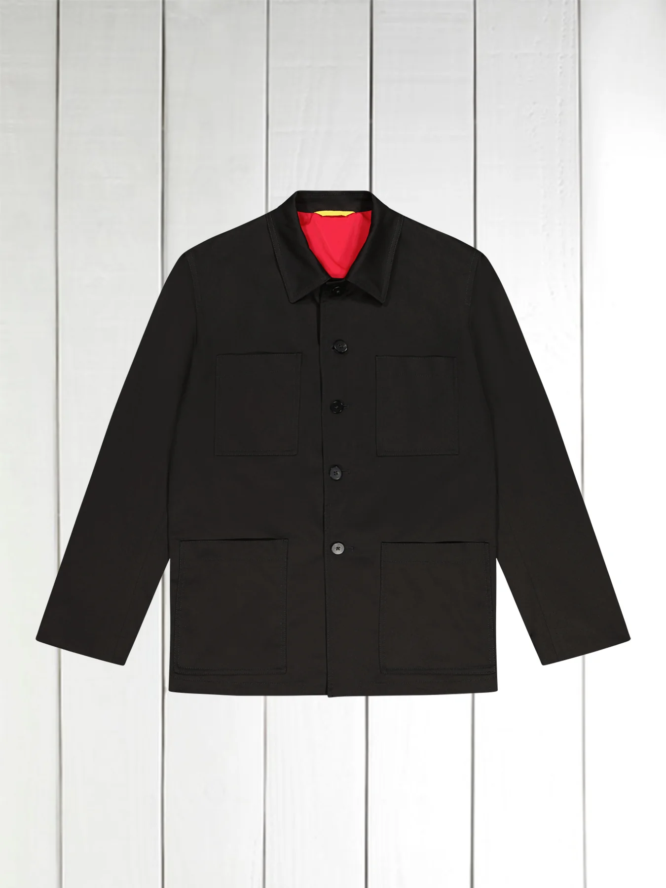 veste lyon à col charpentier en serge de coton extensible noire __TAB__ fiche technique Veste à col charpentier Doublée en coton, non doublée au dos Coupe droite Quatre poches extérieures plaquées – les deux poches hautes sont coupées en biseau Quatre poches intérieures zippées Pli d’aisance au dos Longueur dos taille 46 : 76 cm […]