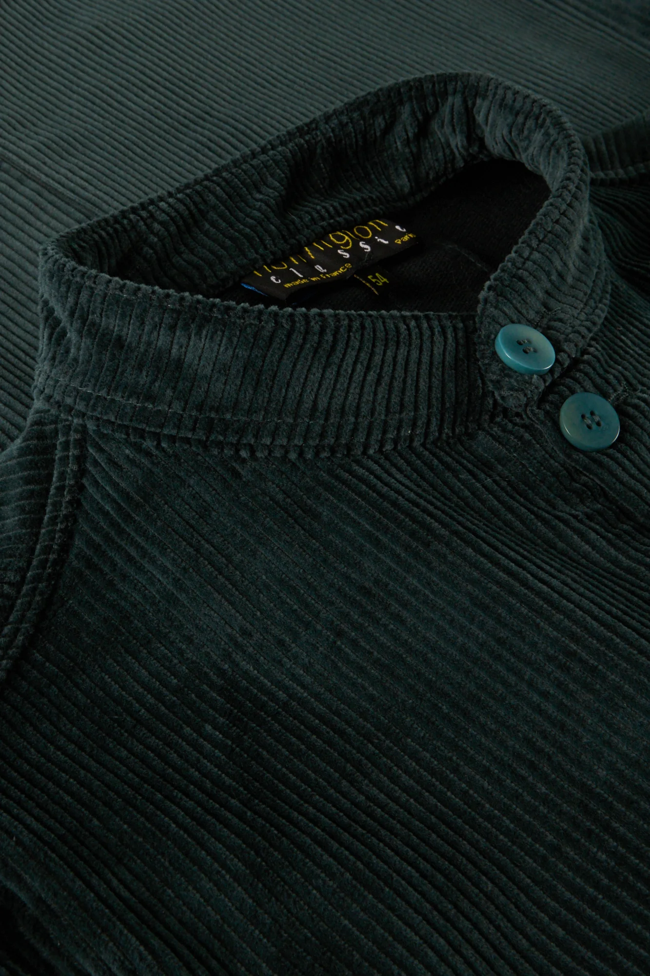 veste naipaul en velours de laine british racing green __TAB__ fiche technique Veste Naipaul à col officier Coupe ample Trois poches extérieures plaquées Trois poches intérieures, une plaquée et deux zippées Non doublée Pli d’aisance au dos Longueur dos taille 46 : 76 cm Composition : 85 % coton, 15 % laine tissé en Italie […]
