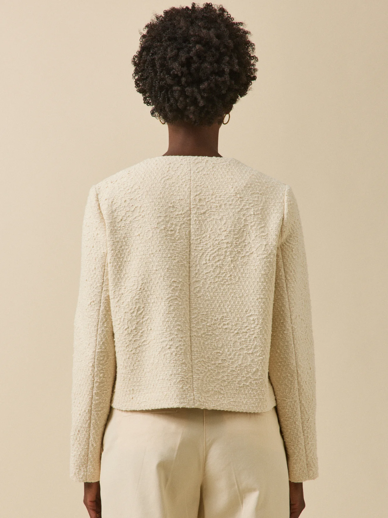 Veste sans col tweed uni femme