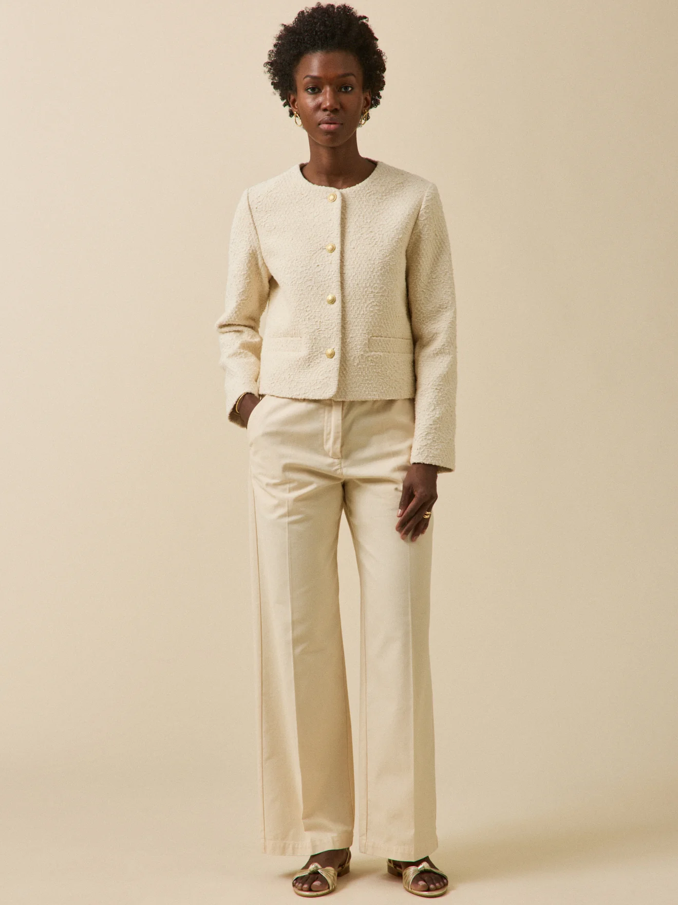 - Veste sans col boutonnée, boutons en métal doré