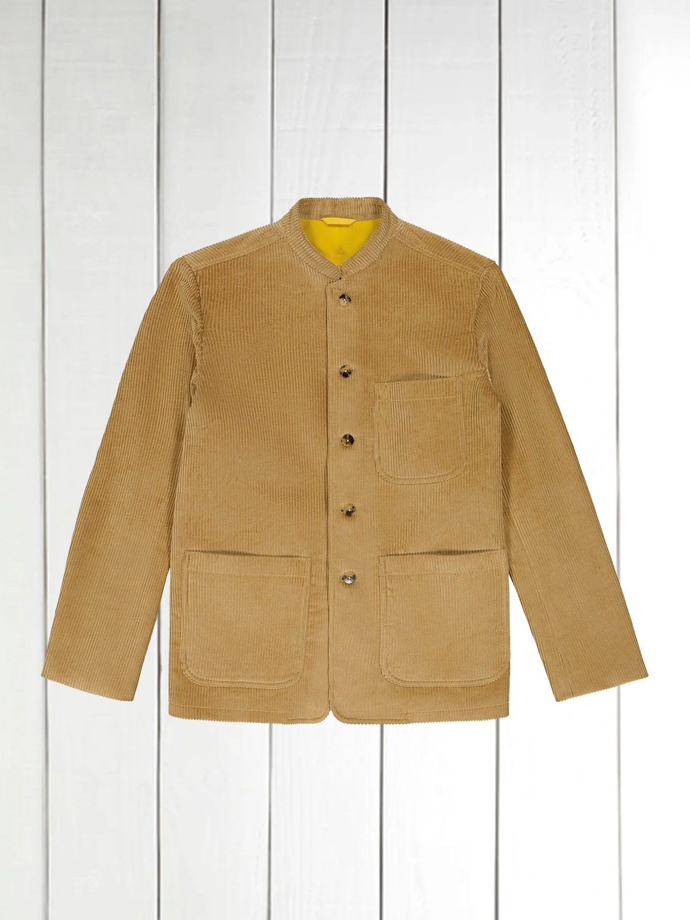 veste tyrol ajustée à col nehru en velours de laine sable