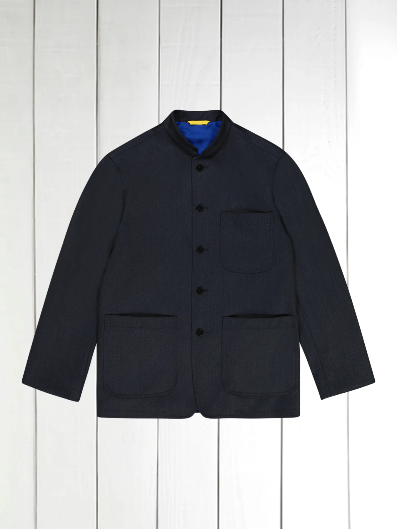 veste lyon à col charpentier en serge de coton extensible dark navy