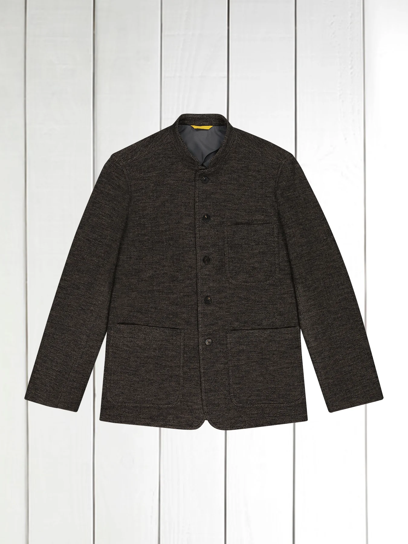 veste architecte à col nehru en denim extensible sanforisé indigo