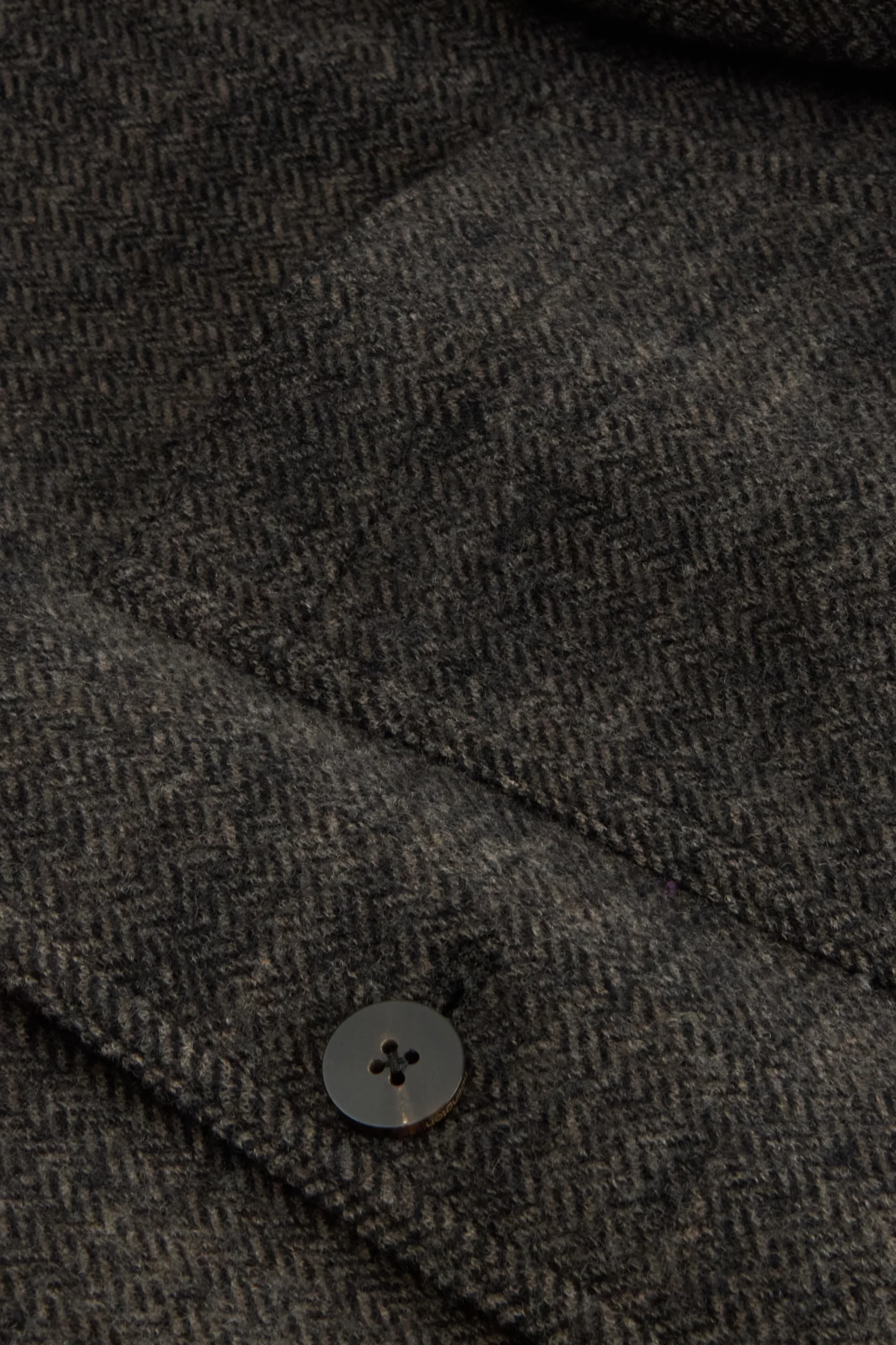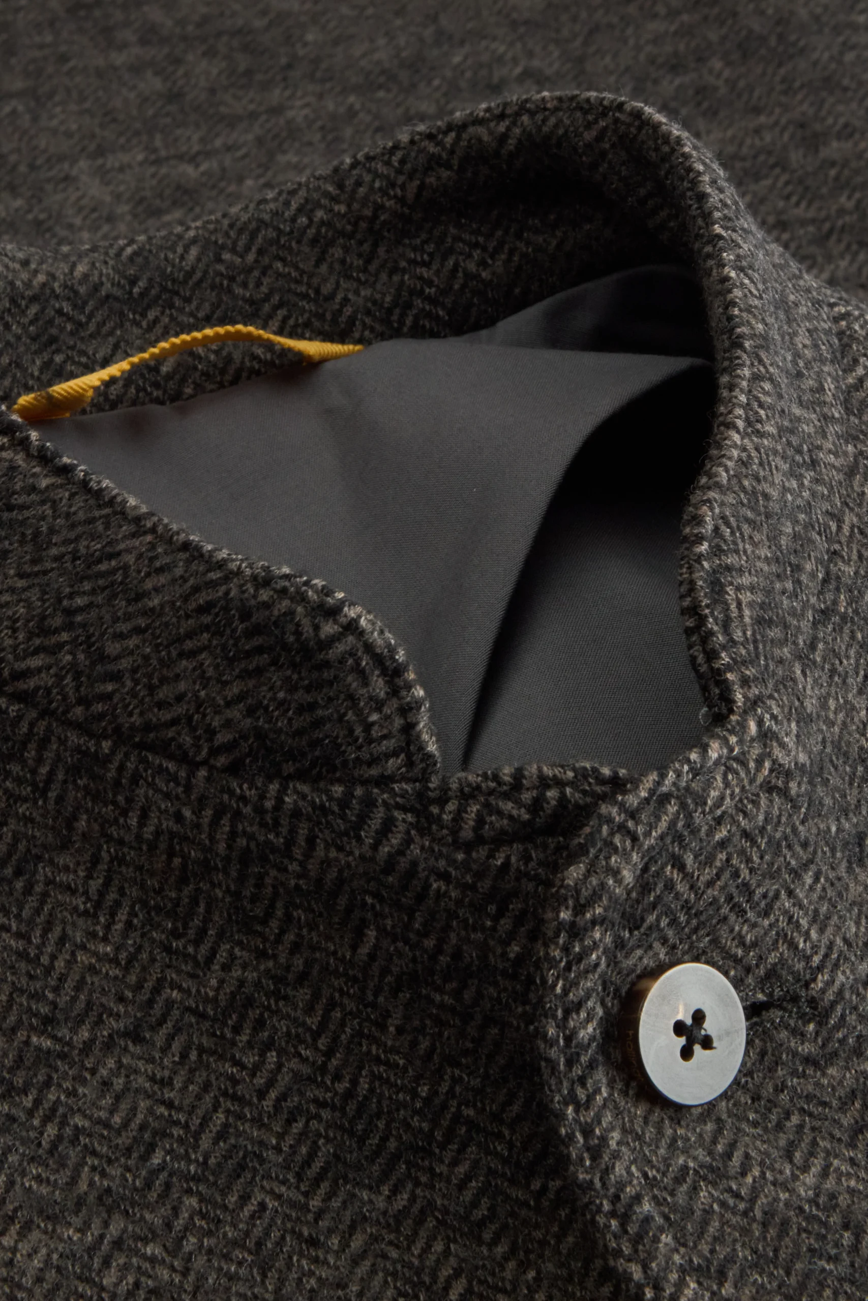 veste tyrol ajustée en chenille de laine à chevrons gris __TAB__ fiche technique Veste Tyrol à col nehru Coupe ajustée Trois poches extérieures plaquées Quatre poches intérieures zippées Pli d’aisance au dos Longueur dos taille 46 : 75 cm Composition : 100 % laine tissé en Italie Doublure : 100 % coton – doublée au […]