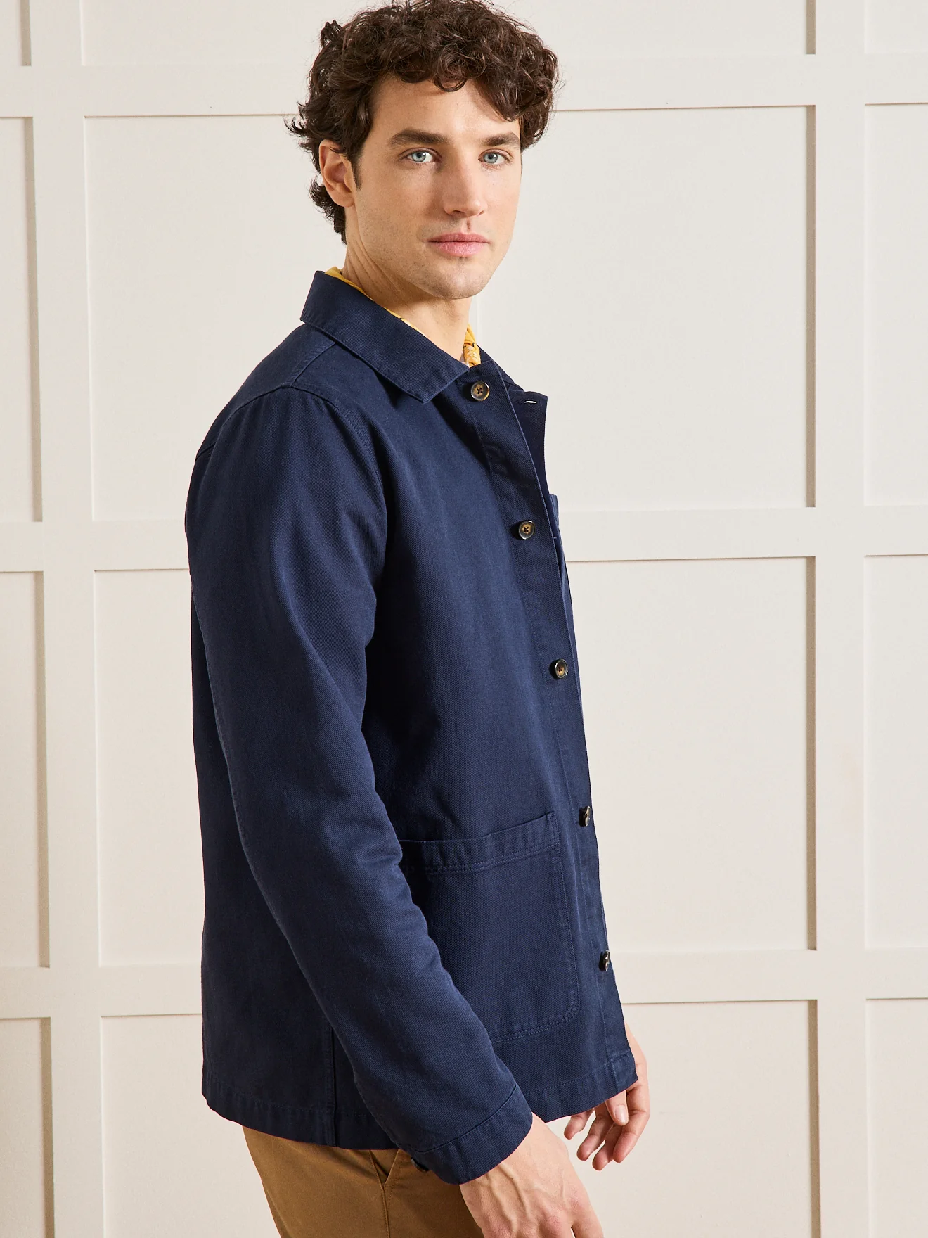 Minimaliste par ses coupes et détails, authentique et confortable par sa matière en coton, tendance par ses coloris intenses et son inspiration workwear. C’est la pièce-phare de la saison, celle qui signe un style et fait le look. Un modèle confectionné au Maroc.