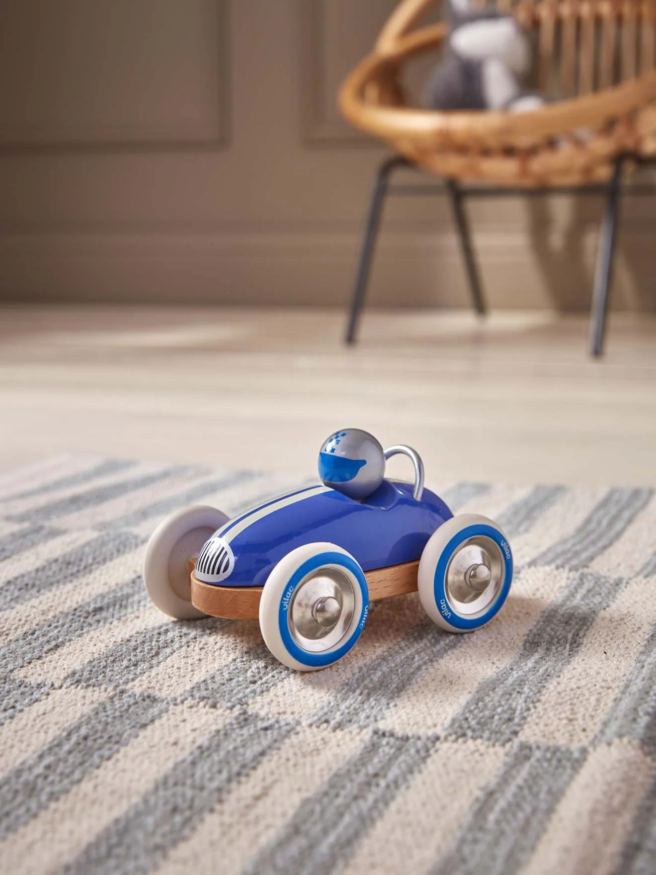 Petite voiture en bois laqué fabriquée en France. Idéal pour s’inventer des histoires et développer sa motricité fine. Son design arrondi est pensé pour les petites mains.
