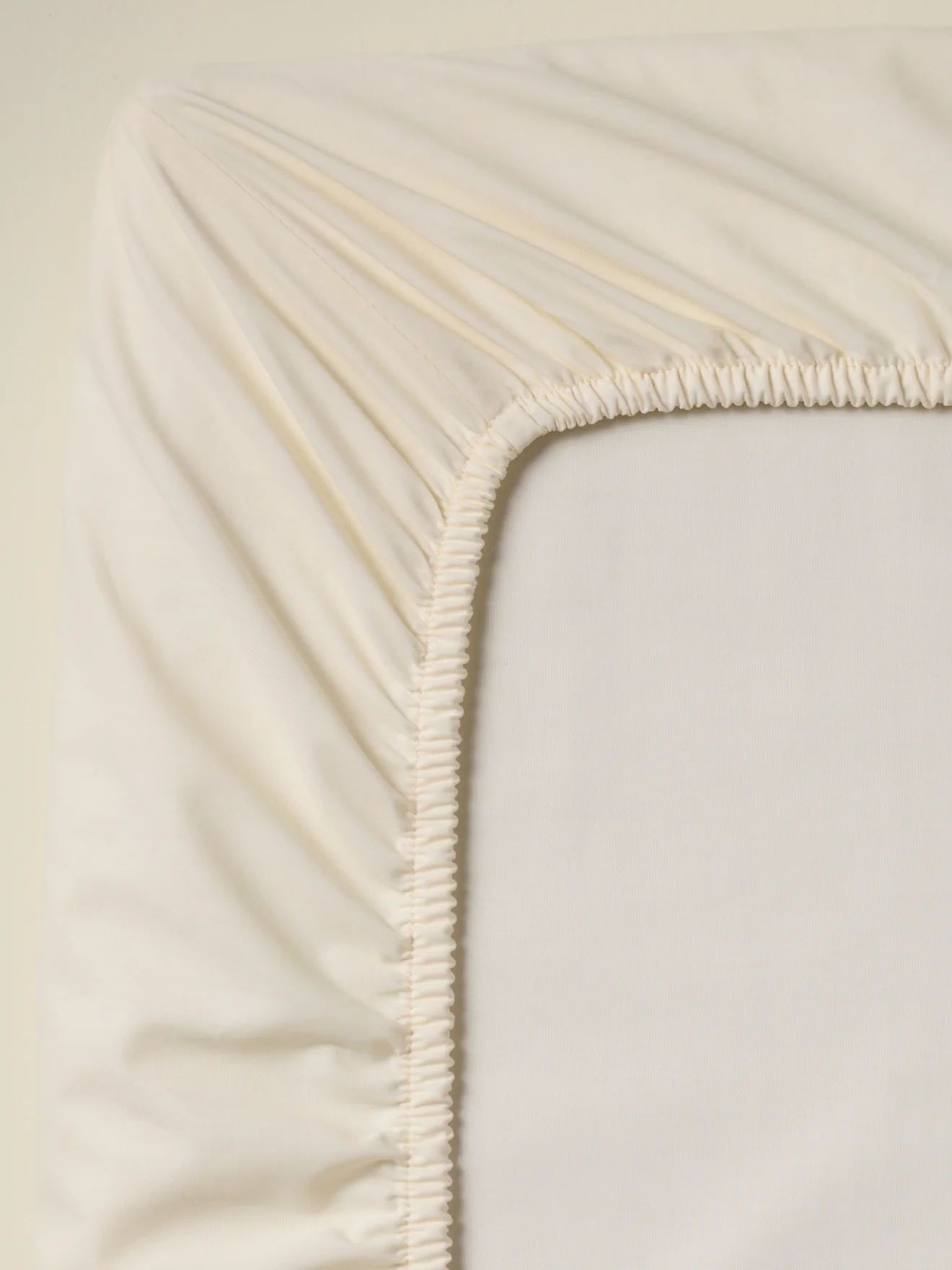 Drap-housse uni en percale de coton douce et résistante. Uni, il se coordonne à la housse de couette et la taie d’oreiller Axel.