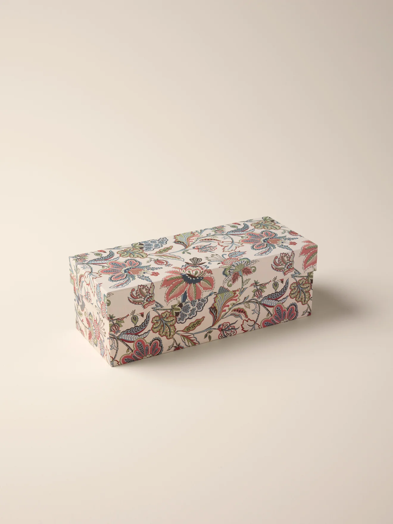 Lot de 4 décorations de Noël en forme de gland confectionnées en verre teinté coloris caramel. Ruban de suspension en velours coloris bordeaux. Décorations fabriquées en Inde de façon artisanale, livrées dans une jolie boîte en papier recouvert de notre imprimé exclusif de Noël.